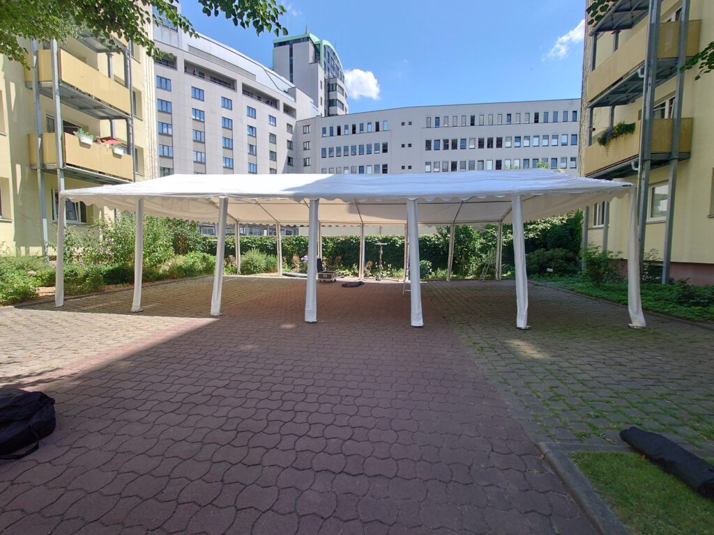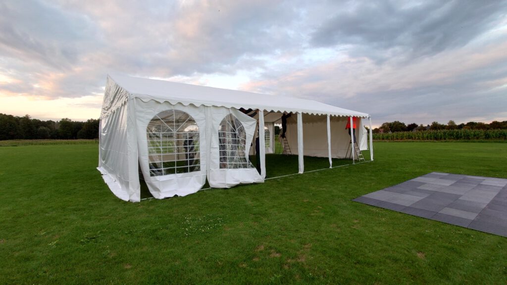 Da Sicherheit und Materialschonung bei dieser Zeltgröße oberste Priorität haben, wird dieses Modell ausschließlich inklusive fachgerechtem Aufbau vermietet.