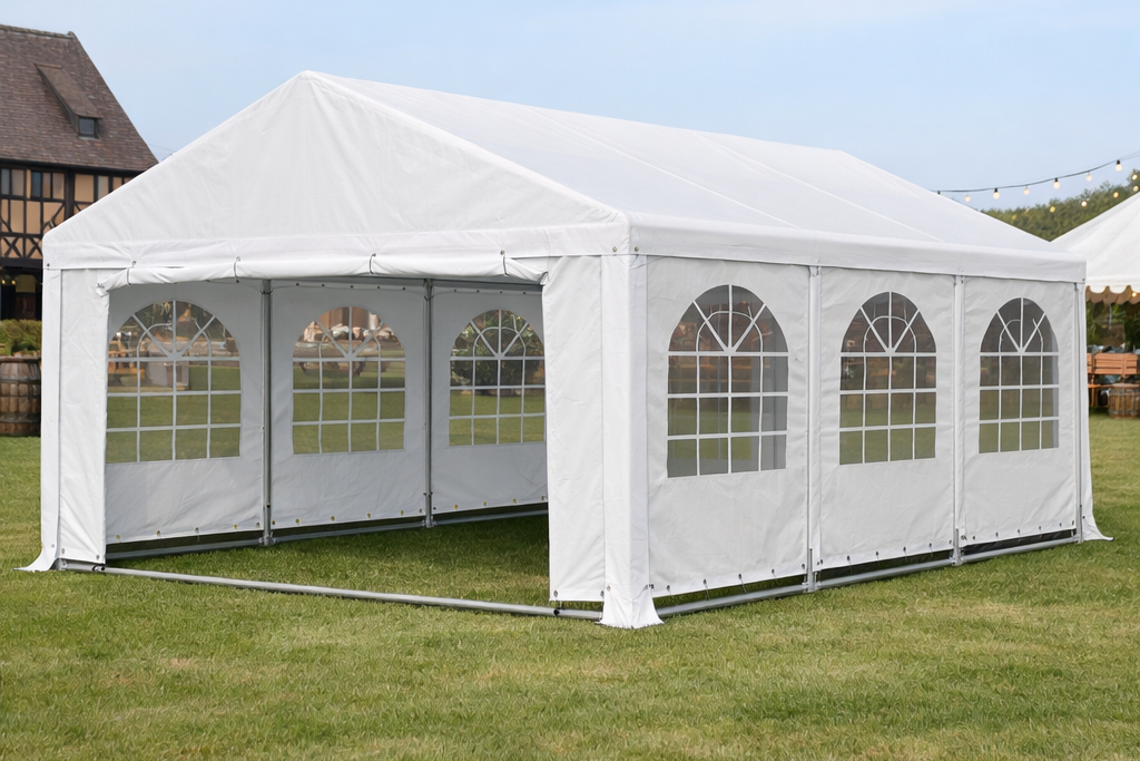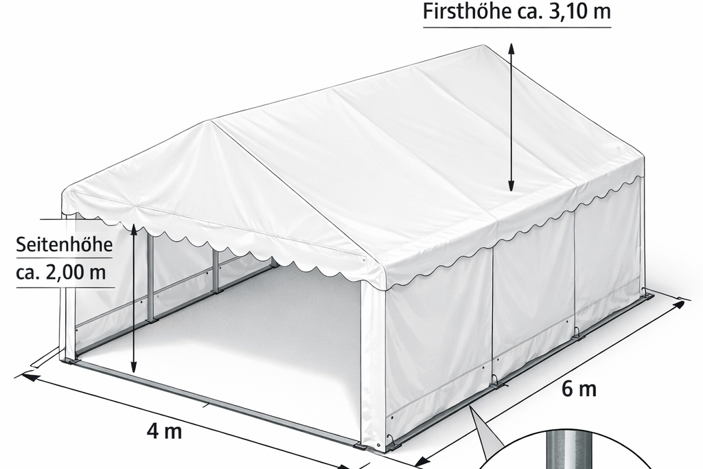 Das 4×6 Meter große Premium-Partyzelt bietet mit ca. 24 m² Grundfläche den idealen Rahmen für mittlere Gesellschaften. Dank der schweren PVC-Plane (500g/m²) und dem vollverzinkten Stahlgestänge ist es absolut wetterfest und stabil.